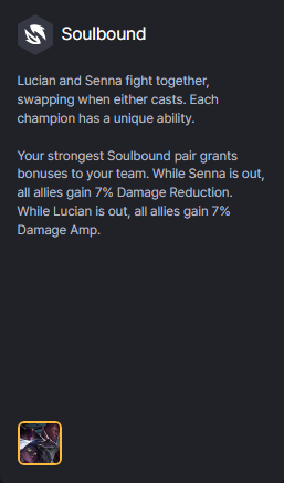 Linh Hồn mạnh nhất cho thêm chỉ số cho cả đội. Khi đang có Senna – cho 7% Chống Chịu, khi đang có Lucian – cho 7% Khuếch Đại Sát Thươn.
