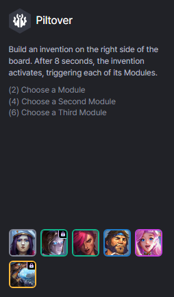 Tướng : Blitzcrank 1 vàng, Ekko 2 vàng, Vi 2 vàng, Mundo 3 vàng, Jinx 3 vàng, Singed 4 vàng (cần mở khóa), Warwick 4 vàng (cần mở khóa), Ziggs 5 vàng (cần mở khóa).
