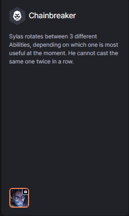 Sylas chuyển đổi giữa 3 kỹ năng khác biệt, dựa trên tình huống. Nhưng không thể dùng 1 kỹ năng liên tiếp.