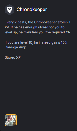 Mỗi 2 lần dùng chiêu, Zilean giữ 1 kinh nghiệm lại. Nếu đã giữ đủ để bạn lên cấp, hắn sẽ tự động chuyển cho Linh Thú số kinh nghiệm đó. Nếu đang ở cấp 10, kinh nghiệm sẽ chuyển thành 15% Khuếch Đại Sát Thương.