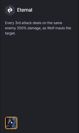 Mỗi 3 đòn đánh trên cùng kẻ địch, Sói sẽ cắn và gây gấp 350% sát thương.