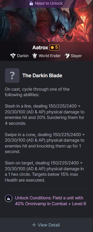Mở khóa : Cấp 8 và sử dụng một đơn vị có 40% hút máu toàn phần trong giao tranh