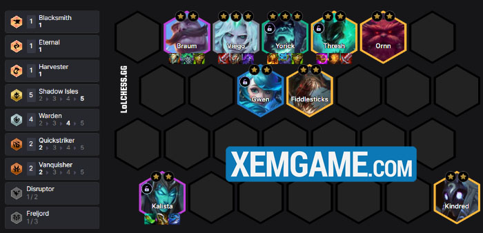 Về cách chơi thì chúng ta sẽ slowroll Viego ở 5 sau đó up cấp lên và bổ sung 4-5 vàng (vì các tướng Quần Đảo sẽ tự mở khóa ở các mốc Linh Hồn nhất định). Về late thì Kalista, Thresh lẫn Fiddlesticks Kindred đều có khả năng gánh đội chung rất ổn áp tùy vào đồ bạn xây dựng cho chúng.