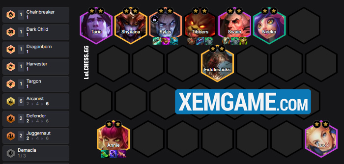 Pháp Sư thì có lẽ khó nhất là việc rush 9 và mở khóa Sylas mà thôi, (Sylas cần bạn BÁN Jarvan, Lux và Garen 2 sao mới ra nên có thể cân nhắc đi lên từ team full Demacia rồi đổi bài về late là được). Một lưu ý nhỏ là đội hình này không cần đồ đốt vì Annie có hiệu ứng đốt full bàn khi dùng chiêu, nên cứ tập trung xây dựng nhiều đồ năng lượng cho Annie và đồ thủ cho Tibbers là được.