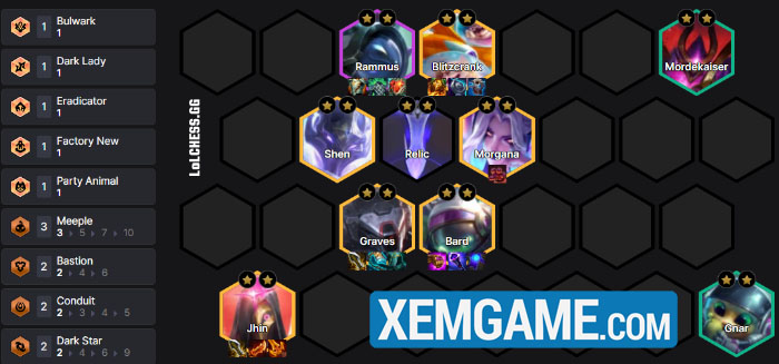 Trong Tộc thì có 6 tướng Cho’Gath, Lissandra, Mordekaiser, Kai’sa, Karma và Jhin và chia đều cho cấp từ 1 đến 5 vàng nên lời khuyên là xây dựng từ từ và nâng cấp tối đa bằng cách flex thêm các tướng 5 vàng vào đội hình cuối cùng.