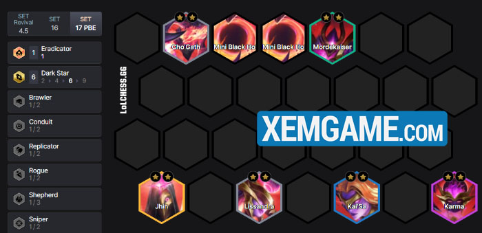 Hắc Tinh là một đội hình thuần Tộc và flex thêm vài tướng kích hệ khác để xây dựng trong ĐTCL mùa 17, với hiệu ứng tạo hố đen khá thú vị và các skin cũng ngầu nữa.