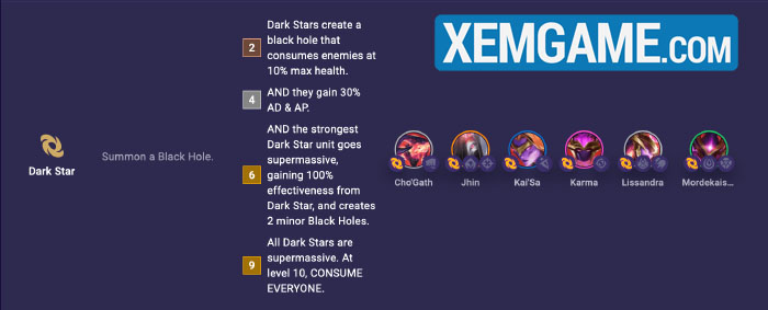 2 hố đen nhỏ sẽ nhận thêm Máu tối đa bằng 30% Máu của tất cả đồng minh Hắc Tinh, nên chúng sẽ là đơn vị tank phụ cực tín hàng trên song song với Cho’Gath hay Mordekaiser.