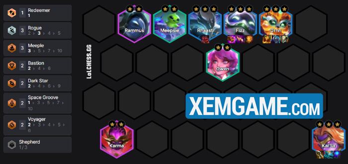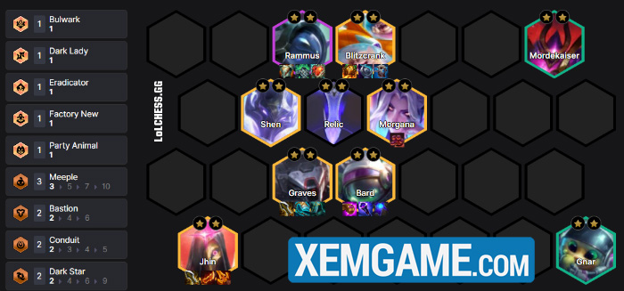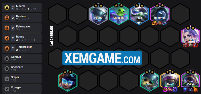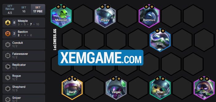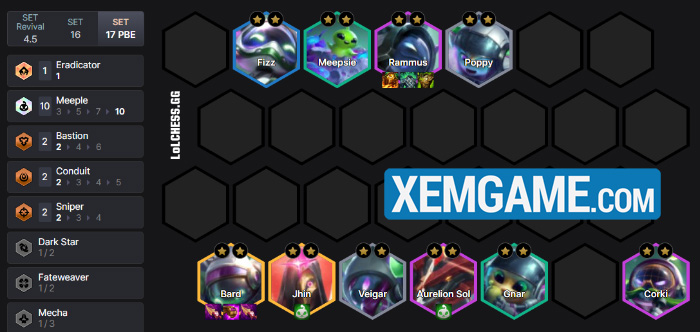 Có rất nhiều kiểu flex đội hình chỉ cần 3 Tinh Linh Chuông mà thôi. Do dàn chắn tập trung vào Rammus và Poppy, chúng ta có thể thử nghiệm Fizz reroll trong Vô Pháp, Gnar làm chủ lực Bắn Tỉa, Corki, Bard làm tướng carry cấp độ cao…