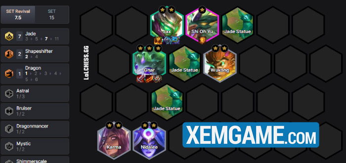 Về late thì chúng ta sẽ hướng đến đội hình mạnh 4 Hóa Hình – 4 Bang Hội như sau ở cấp 9, vì chất lượng tướng sẽ cao hơn hẳn các Ngọc Long và có nhiều nguồn sát thương phụ :