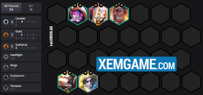 Theo đó, Tưng Tửng là carry Long Thần có cái giá 6 vàng, nhưng bạn có thể reroll nó ở cấp 7 như các tướng 3 vàng khác. Trong giai đoạn ban đầu, chúng ta có thể dùng khung Kỵ Sĩ – Xạ Tiễn để def máu với đầu tàu là Twitch – Sejuani :