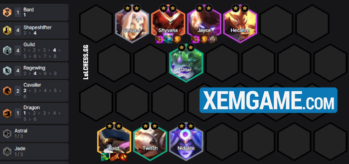 Theo đó, nói khó xây dựng Jayce vì Hóa Hình 4 sẽ cần Shyvana – một Long Thần 10 vàng cực khó tìm, chưa kể bộ tướng đi kèm như Bard Xayah và Hecarim cũng bị tranh không kém cho các bộ Cuồng Long hay Bang Hội. Do vậy chỉ chơi bài này khi bạn dư dả tiền bạc và máu để fast 9 tìm được Shyvana.