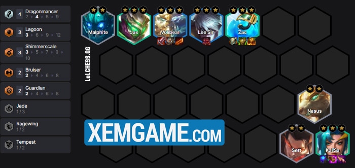 Đây có lẽ là đội hình khó chơi và dị nhất mà chúng ta có thể xây dựng trong Tái Hiện 7.5, khi bạn sẽ cần ít nhất cấp 9 và một lượng vàng không nhỏ để roll tất cả Long Thần. Tuy vậy, bạn có thể nghĩ đến bài này khi chuyển từ nổ hũ Kim Long sang hay có một giai đoạn ban đầu nằm gai nếm mật eco để lên cấp :