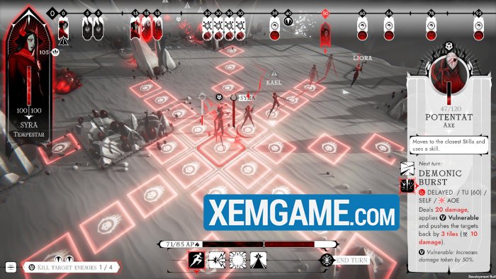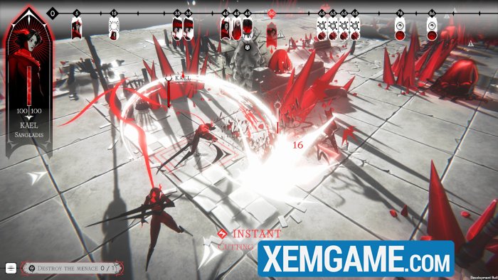 Với tựa game “Ex Sanguis”, máu me là điều không thể tránh khỏi, nhưng nó có thể đi theo nhiều hướng khác nhau. Có thể là những vệt máu kiểu Tarantino như trong Mortal Kombat hoặc chủ nghĩa hiện thực cực độ của The Last of Us Part 2, nhưng Ex Sanguis lại chọn hiệu ứng cách điệu, và điều đó đã mang lại thành công lớn. Toàn bộ trò chơi có gam màu trắng và đỏ bóng bẩy, gợi nhớ đến tựa game VR đình đám Superhot. Nhưng đây là một game chiến thuật theo lượt, chứ không phải là một game bắn súng xoay quanh thời gian.