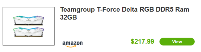 Xét một số ví dụ cụ thể về việc tăng giá, bộ RAM Teamgroup 32GB DDR5, 6000MHz có giá khoảng 85 đô la vào tháng 9 – một mức giá mà việc nâng cấp hệ thống lên 32GB là điều hiển nhiên. Giờ đây, nó có giá 217,99 đô la, mức giá cao nhất từ trước đến nay, với mức tăng gần 40 đô la chỉ trong tuần qua.