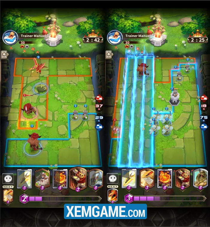 Để chinh phục thêm các vùng đất, tất cả những gì cần phải làm là kích hoạt thẻ bài ngay gần mục tiêu đó. Chúng sẽ tự động tiến tới chiếm điểm và đánh đuổi kẻ thù đi khỏi.