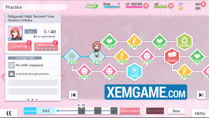 Theo đó mỗi idol đều sẽ có những chỉ số như độ dễ thương (thu hút khán giả hơn), thể lực (để làm đầy SP Gauge nhanh hơn) và kỹ năng đặc biệt riêng…. Việc lựa chọn đội hình trong game sẽ ảnh hưởng đến màn biểu diễn của chính idol lên sân khấu nên bạn hãy cẩn thận trong khâu này.