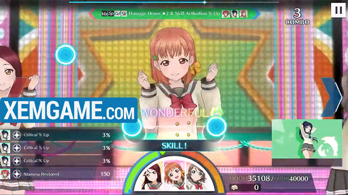 Bên cạnh đó, ngay trong liveshow, tùy vào đội hình mà bạn có thể tung những chiêu thức đặc biệt trong lúc trình diễn để thu hút thêm cảm tình của khán giả. Chúng sẽ được làm đầy dần dần bằng thanh SP Gauge trong quá trình chơi và bạn có thể kích hoạt bất kỳ khi nào bạn muốn.