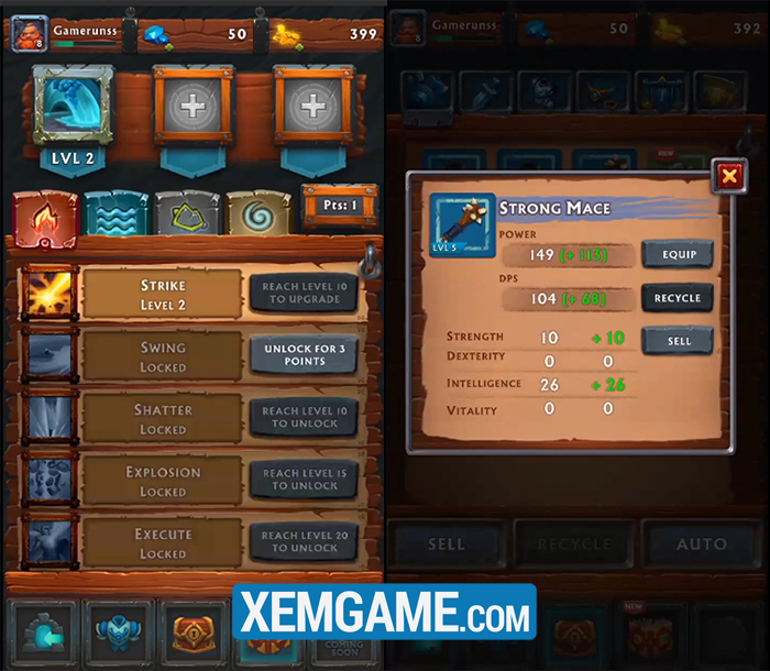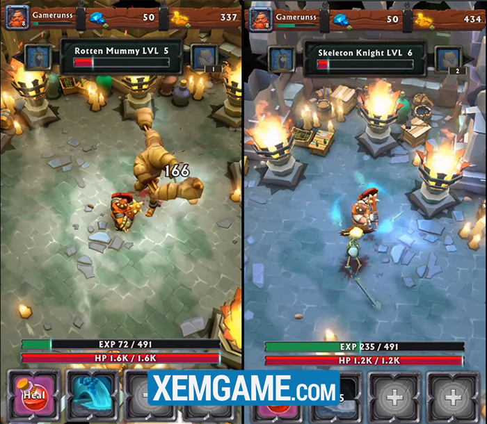 Người chơi sau khi hạ gục các loại quái vật sẽ lên cấp và nhận được những điểm chỉ số cải thiện lực chiến của mình. Khi đã chắc ăn với sức mạnh của nhân vật của mình bạn có thể khiêu chiến boss của màn ngay lập tức chỉ với một nút bấm.