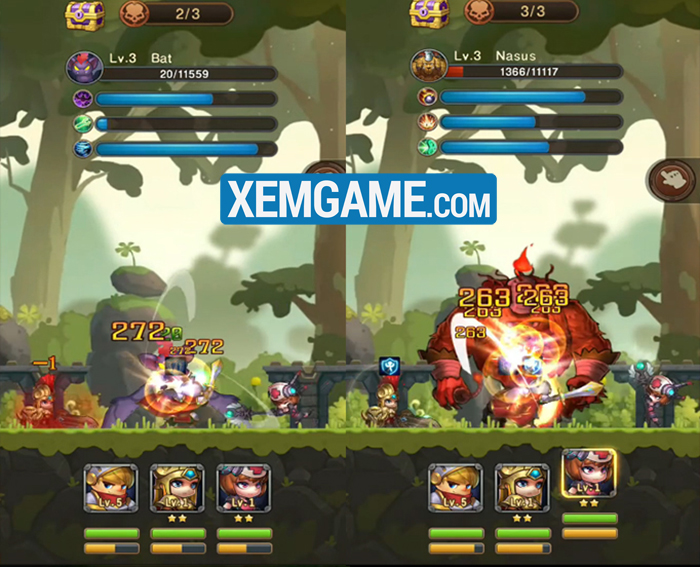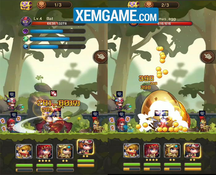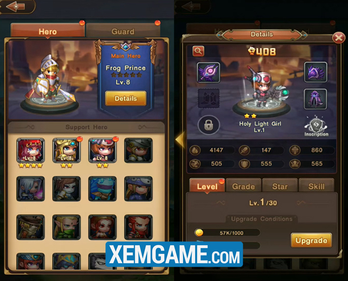 Số tiền vàng kiếm được sao mỗi trận có thể dùng để thuê các nhân vật vào tổ đội, hoặc đơn giản là nâng cấp trang bị, kỹ năng của nhân vật chính mà thôi. Bạn có thể dễ dàng quan sát tiến trình của nhân vật thông qua thanh lực chiến trong game.