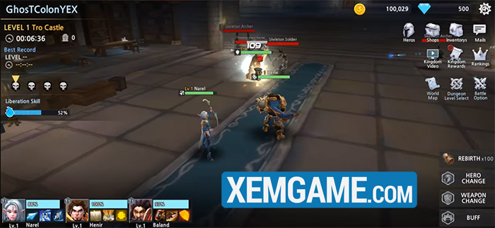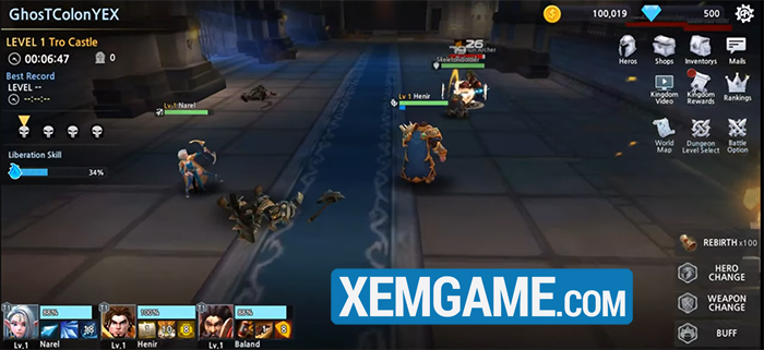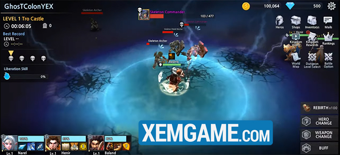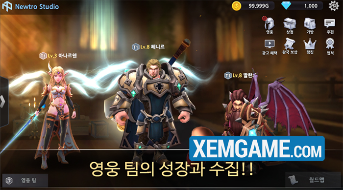 Ban đầu sẽ là 3 nhân vật cố định, trong quá trình chơi game thủ có thể mở thêm nhiều nhân vât, kỹ năng nâng cao sức chiến đấu cho đội hình vượt qua các thử thách ngày càng tăng độ khó trong game.