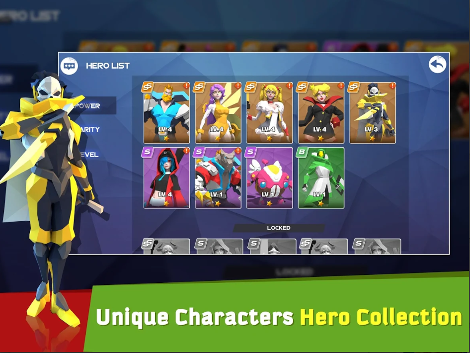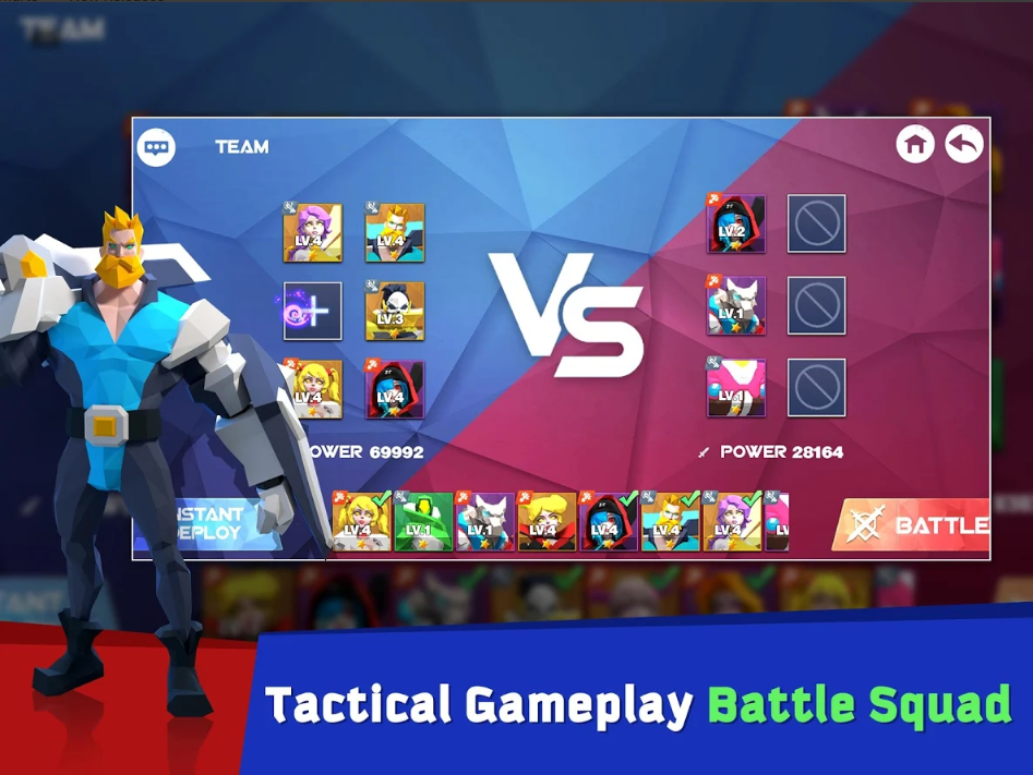 Bạn có thể thu thập một đội hình gồm 5 anh hùng khác nhau, mỗi người có khả năng đặc biệt của riêng họ. Các anh hùng sẽ có những chỉ số được nâng cao khi có đủ đội hình cần thiết, mỗi lần thay đổi trận hình sẽ đem đến những chiến thuật đặc biệt khác nhau, người chơi cần nắm rõ ưu/nhược điểm của từng tướng để tìm ra hướng đi phù hợp nhất với bản thân. Người chơi còn có thể tăng cấp cho các anh hùng, nâng cấp khả năng của bạn và hoàn thiện đội của bạn.