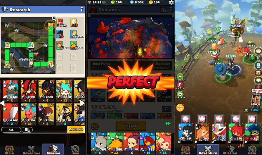Bạn chỉ cần ngồi xem và đưa ra những thay đổi chiến lược bằng cách chuyển đổi nhân vật trong lúc đội hình vẫn liên tục tiến về phía trước để đánh nhau với kẻ địch. Các kỹ năng sẽ lóe sáng lên khi đã nạp đủ năng lượng để sử dụng.