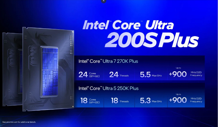 Intel vừa ra mắt dòng vi xử lý máy tính để bàn Core Ultra 200S Plus, bao gồm Core Ultra 7 270K Plus và Core Ultra 5 250K Plus.
