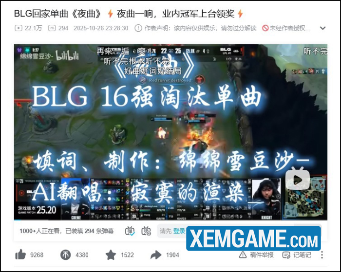 Tuy vậy hài hước là sự thất bại của á quân CKTG 2024 BLG lại được ăn mừng khắp toàn cõi LMHT, khi các nền tảng mạng xã hội Trung Quốc bùng nổ với những bài nhạc chế và meme về sự thất bại của BLG. Chỉ cần tìm kiếm từ khóa “BLG” trên nền tảng video bilibili, bạn có thể tìm thấy những bài hát như “bài hát BLG hạng 16”, “bài hát BLG về nhà”, “có cơ hội đoạt giải quán quân” “đội tuyển toàn người Trung Quốc”…