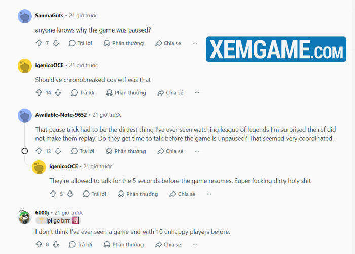 Trong quá khứ thì ngay cả nhà vô địch thế giới LMHT Scout cũng bực tức về kiểu pause chiến thuật này, nên chẳng trách cộng đồng LMHT lại có phản ứng mạnh đến vậy. Tuy vậy dù có khiếu nại đến đâu thì kết quả cuối cùng bên phía BTC vẫn là lớn nhất.