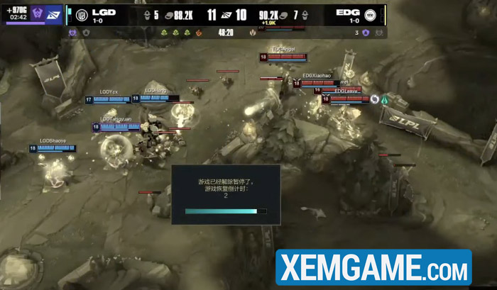 Cả 2 đội đang giằng co nhau ở phút 48 của trận đấu, LGD đang có lợi thế 1 trận thắng dẫn trước và bên phía họ cũng có không ít bùa lợi để setup giao tranh. Nhưng trong một tình huống ở đường giữa, bất ngờ LGD đã đứng ra để tạm dừng vì lý do kỹ thuật.