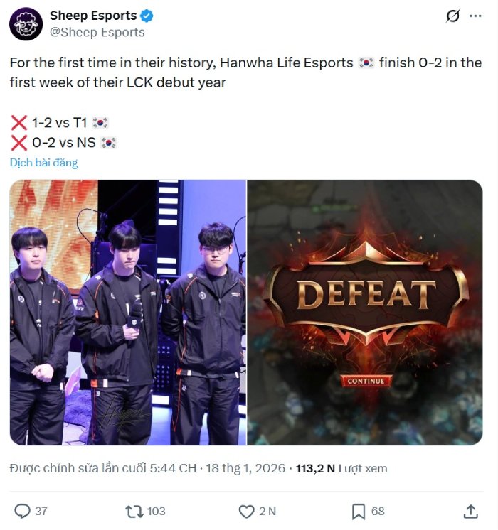 Tuy nhiên, sau tuần đầu tiên của LCK Cup 2026, HLE đã lập một “thành tích” đáng xấu hổ: lần đầu tiên trong lịch sử đội này, họ thua trắng cả 2 trận ra mắt mùa giải LCK mới.