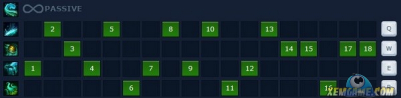 Nhớ nâng một điểm Lời Răn Khắc Nghiệt (W) ở cấp độ 2 để có thể áp sát kẻ địch tốt hơn, cũng như gây thêm được một lượng sát thương theo % máu tối đa của mục tiêu.