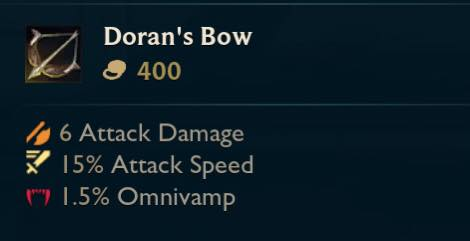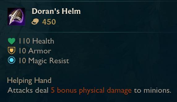 Mũ Doran : 110 Máu/10 giáp/10 kháng phép – Các đòn đánh cho thêm 5 sát thương vật lý thêm tới lính