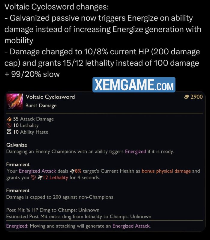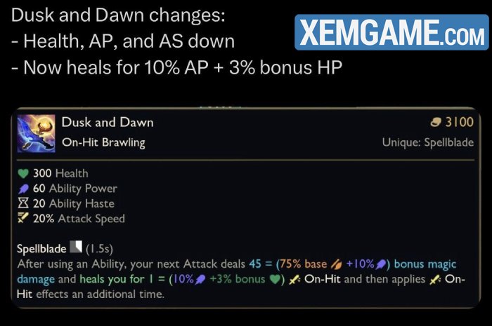 - Sát thương đổi thành 10/8% Máu hiện tại (200 tối đa) và cho 15/12 Sát Lực.