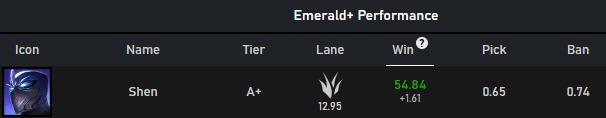 Tuy vậy, không phải Mundo, Lee Sin hay Kha’Zix là vị tướng có tỉ lệ thắng cao nhất trong khu rừng hiện tại, mà là một cái tên khá lạ và chỉ mới xuất hiện trong meta vài ngày gần đây cùng lối xây dựng mới – Shen.