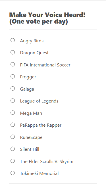 Tiến hành bầu chọn tại : https://www.museumofplay.org/players-choice-ballot/