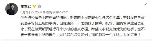 Đau thần kinh tọa là một chấn thương khá nghiêm trọng, không chỉ đơn giản là ảnh hưởng đến việc thay đổi nhân sự thi đấu mà đó còn là con đường chuyên nghiệp của họ sau này, thế nhưng sức khỏe là quan trọng nhất. Trước đây chúng tôi đã tìm rất nhiều cách để chữa trị như xoa bóp, châm cứu… hiện tại mỗi ngày cậu ấy đều phải thực hiện vài giờ vật lý trị liệu.