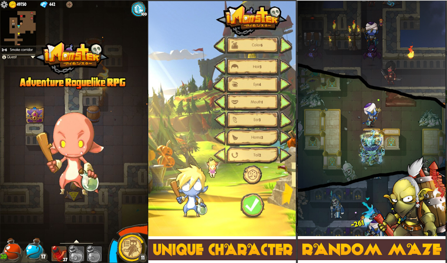 Cũng như nhiều game dạng RPG khác, bạn cũng có thể thoải mái phát triển nhân vật của mình trong i Monster, từ tạo ra và chỉnh trang nhân vật theo ý thích cho đến phát triển chúng thành các lớp nghề nghiệp khác nhau như chiến binh, cung thủ hay thầy pháp.