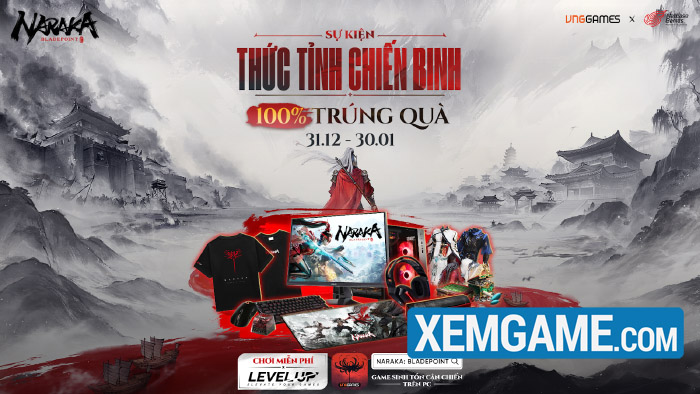Không dừng lại ở đó, VNGGames còn tổ chức sự kiện siêu khủng “Thức Tỉnh Chiến Binh” để chào đón những tân thủ đổ bộ NARAKA: Bladepoint từ ngày 31.12.2025 cho tới 30.01.2026. Với tỷ lệ trúng quà lên tới 100%, sự kiện thậm chí công bố giải thưởng siêu khủng là bộ PC custom NARAKA trị giá lên tới 77 triệu đồng cùng hàng loạt giải thưởng khác giá trị dành riêng cho người chơi NARAKA: Bladepoint phiên bản VNGGames. Đồng thời, toàn server cũng sẽ nhận được các phần quà từ sự kiện “Đăng Ký Trước” sau khi hoạt động này kết thúc ấn tượng tại cột mốc 20,000 lượt người đăng ký.