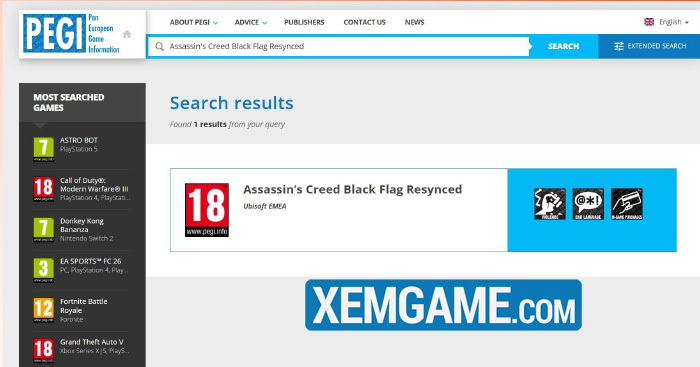 Assassin’s Creed Black Flag Resynced đã được xác nhận chuẩn bị được công bố thông qua hệ thống phân loại game PEGI.