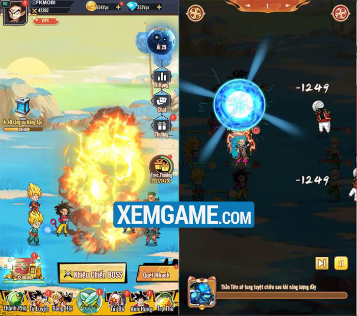Khác với những game idle thông thường, Rồng Thần Đại Chiến Mobile tái hiện dàn nhân vật Dragon Ball bằng tạo hình 2D sinh động, bùng nổ hiệu ứng biến hình Super Saiyan, bắn Kamehameha, dịch chuyển tức thời, hay hóa Thần. Mỗi chiến binh đều sở hữu bộ kỹ năng riêng biệt, có thể kích hoạt dạng tiến hóa cao cấp để mở khóa chỉ số và kỹ năng ẩn.