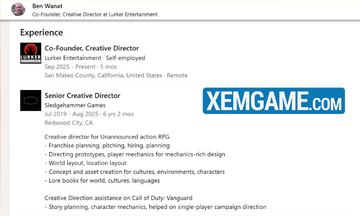 Cựu giám đốc sáng tạo của Sledgehammer, Ben Wanat, có đề cập đến dự án này trong phần kinh nghiệm trên hồ sơ LinkedIn của mình. Wanat, người trước đây từng đảm nhiệm các vai trò tương tự khi làm việc cho loạt game Dead Space và Tomb Raider, đã rời Sledgehammer năm ngoái sau sáu năm gắn bó với studio. Tuy nhiên, mặc dù trang LinkedIn có đề cập đến việc ông hỗ trợ định hướng sáng tạo cho các phần chiến dịch của Call of Duty Vanguard, trọng tâm chính của ông dường như là việc thành lập dự án game nhập vai bí ẩn này.