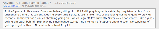 Vừa qua trên mạng Reddit có một bài đăng với tiêu đề “Có ai 40+ mà vẫn chơi Liên Minh Huyền Thoại hay không?”. Chủ đề thú vị này đã nhận được rất nhiều bình luận, phản hồi từ cộng đồng mạng.