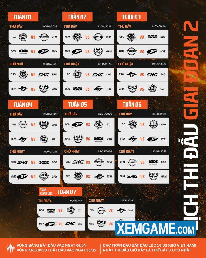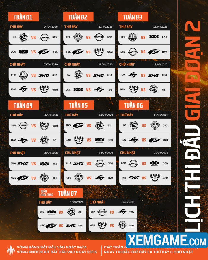 Giai Đoạn 2 của LCP sẽ khởi tranh vào ngày 04.04 và kéo dài đến ngày 07.06.2026. Sau đây là lịch thi đấu của Mùa Giải Chính.