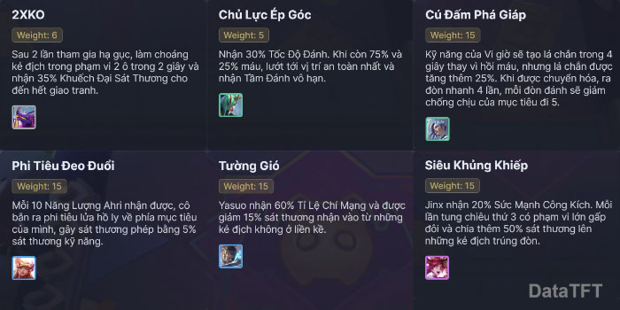 Aura Farming sẽ bị loại bỏ 1 trang bị hợp với tướng để chỉ nhận 1 con 5 vàng 2 sao trần truồng ở 4-3 mà thôi. Một số Lõi ít được dùng như Dựa Hơi, Leo Hạng, Thu Thập Trang Bị, Tất Tay Bậc Đồng, Ánh Trăng Vĩ Đại hay Bộ Đôi… sẽ được buff hay chuyển đổi chỉ số cộng thẳng cố định thành phần trăm để theo trend mới của bản cập nhật này. Một Lõi bậc Kim Cương đáng chú ý bị nerf sắp tới là Nhân Vật Chính khi hầu hết các Lõi Anh Hùng quá khỏe và có chúng 4 sao thì quá dễ vào top, nên thay vì nhận bản sao ngay khi chọn Lõi thì chúng ta sẽ delay lại sau 3 lượt và có 3 sao/4 sao trễ hơn.