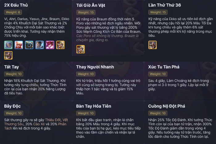 Bên cạnh đó, đừng quên bộ Thức Tỉnh mới (có một số độc quyền của tướng) được cập nhật trên PBE này. Tuy vậy vẫn chưa rõ Riot Games sẽ giữ lại bao nhiêu cái cho phiên bản chính thức :