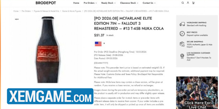 Một trang đặt hàng trước cho mô hình nhân vật theo chủ đề Nuka Cola, liên quan đến “Fallout 3 Remastered,” đã xuất hiện trực tuyến.
