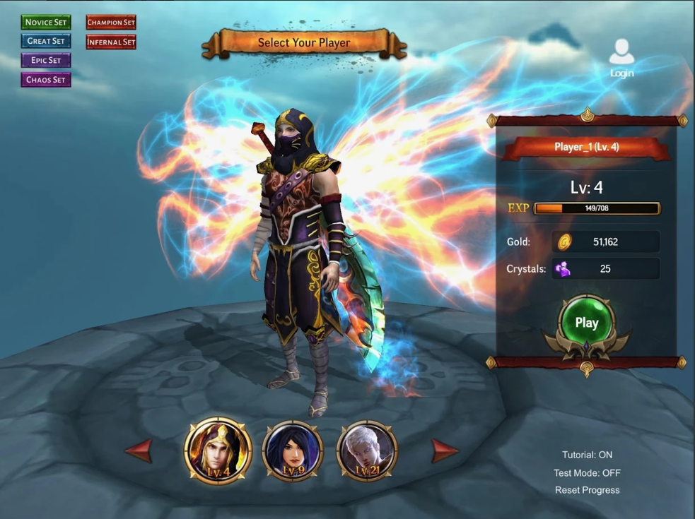 Khởi đầu, bạn sẽ chọn 1 trong 3 lớp nhân vật quen thuộc là pháp sư, hiệp sĩ và sát thủ trong chiến trường ARPG nhịp độ nhanh mà Dawnblade mang lại :