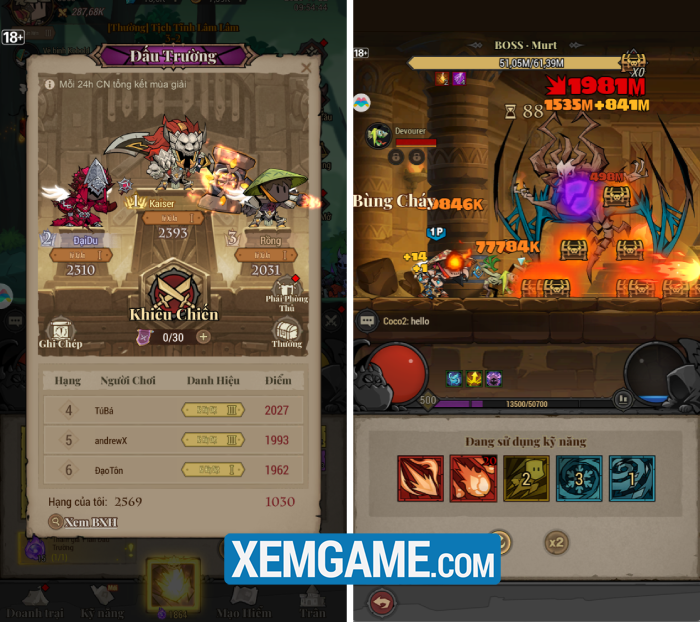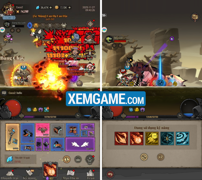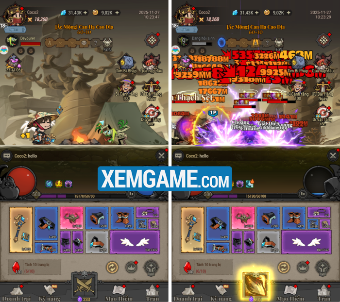 Game thiết kế dọc giúp thao tác một tay cực dễ, kèm auto chiến hoàn toàn. Khi vượt ải hoặc thám hiểm, chỉ cần bật x2 tốc độ là bạn có thể quét màn cực nhanh. Hiệu ứng kỹ năng đẹp mắt, cảm giác đánh “đã tay” và loot đồ rơi ngập màn hình mang đến độ gây nghiện cao, đúng kiểu “càng treo càng mạnh”