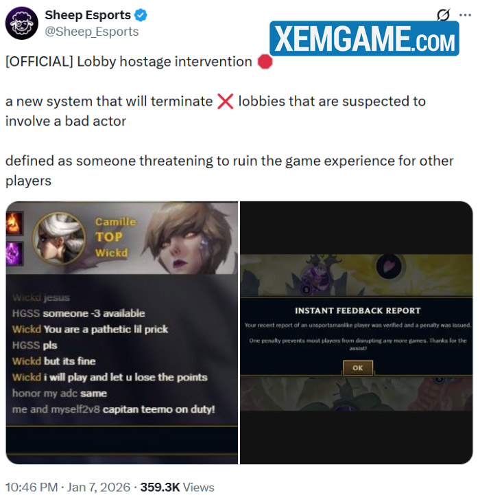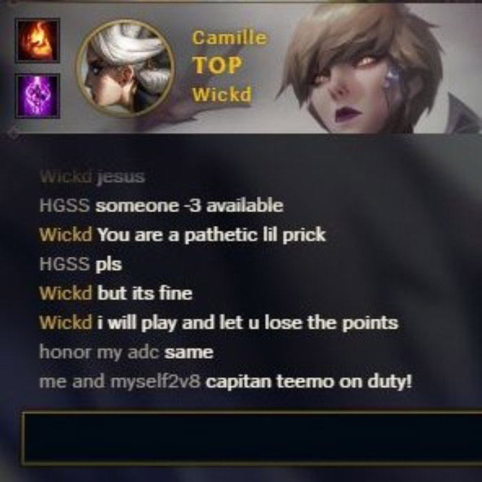 Trong LMHT, phá game tồn tại ở muôn hình muôn trạng và một trong những tình huống thường gặp nhất chính là việc có người uy hiếp cả đội ngay trong khâu cấm chọn tướng. Cụ thể thì trong giai đoạn lobby chọn tướng dù ngắn, vẫn có một số người chơi tiêu cực sẵn sàng khiến trải nghiệm của đồng đội trở nên “địa ngục” nhất có thể.
